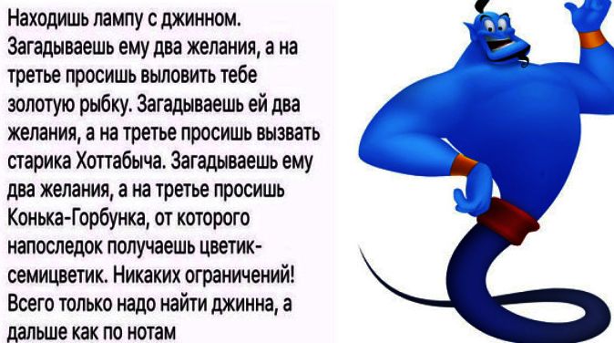 - Я раб лампы и раб хозяина лампы. А раз ты хозяин, то и желай сколько влезет, пока лампа у тебя.
